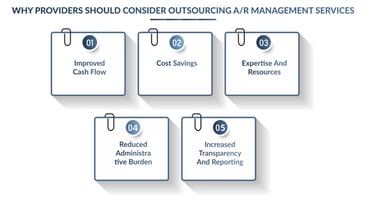A/R management services can help providers collect payments faster and reduce the number of days outstanding, resulting in improved cash flow and increased revenue.