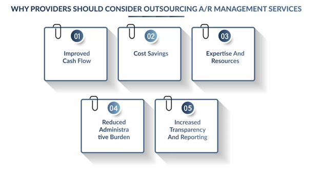 Outsourcing A/R management can be more cost-effective than hiring and training in-house staff to manage it. Providers can save on salaries, benefits, and other overhead costs associated with hiring additional staff.